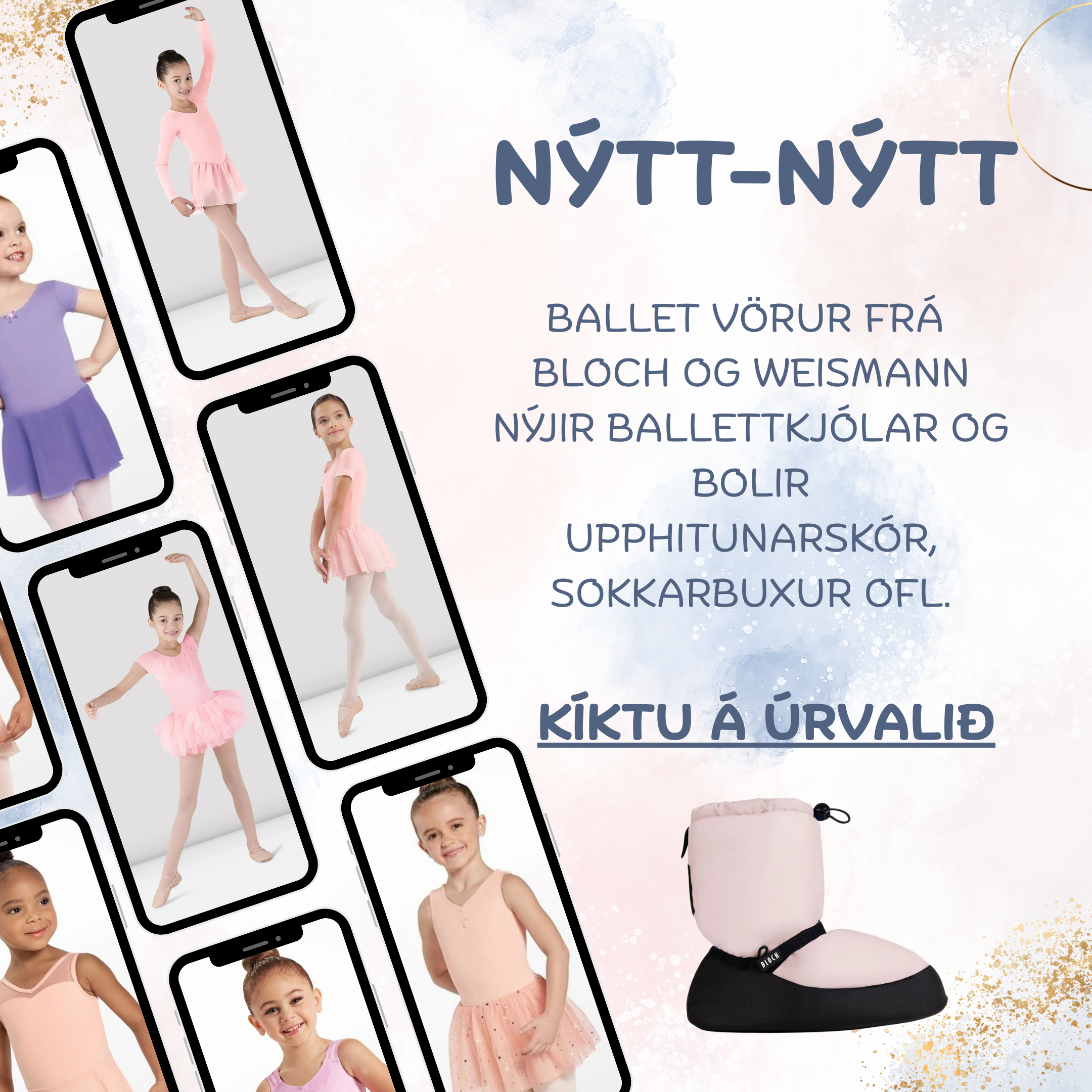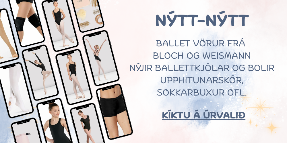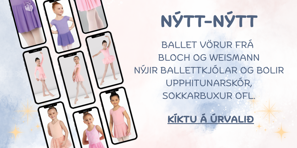 Allt fyrir fimleika, dans og ballett - fimleikabolir, ballettkjólar og bolir, pils, sokkabuxur, skór og aukahlutir